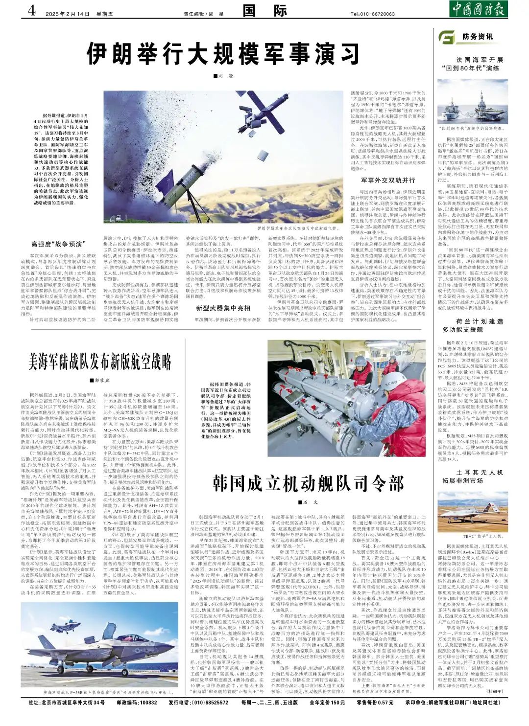 在2025年,全球军事领域经历了重大变革。这一年,各国军事力量不断调整,技术革新日新月异。精选十则新闻涵盖了新型武器装备的研发、国际军事合作加强、军事演习与战略部署等多个方面。包括某国成功试射新型导弹、多国联合军演加强区域安全合作、新型隐形战机亮相国际军事展览等。这些新闻反映了全球军事领域的动态和趋势,对军事爱好者及关注国际形势的人士具有重要意义。
