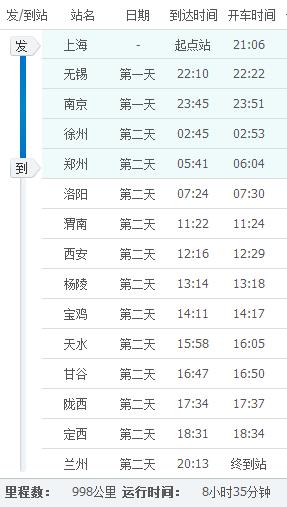 直180次列车时刻表