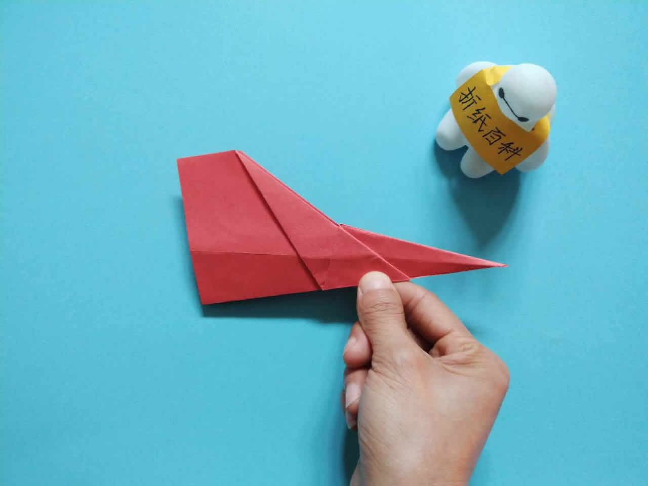 4、折纸翼和尾翼:在基础机翼形状的基础上,将两侧折叠成翼尖形状,形成机翼,在机身末端折叠一小部分作为尾翼。
