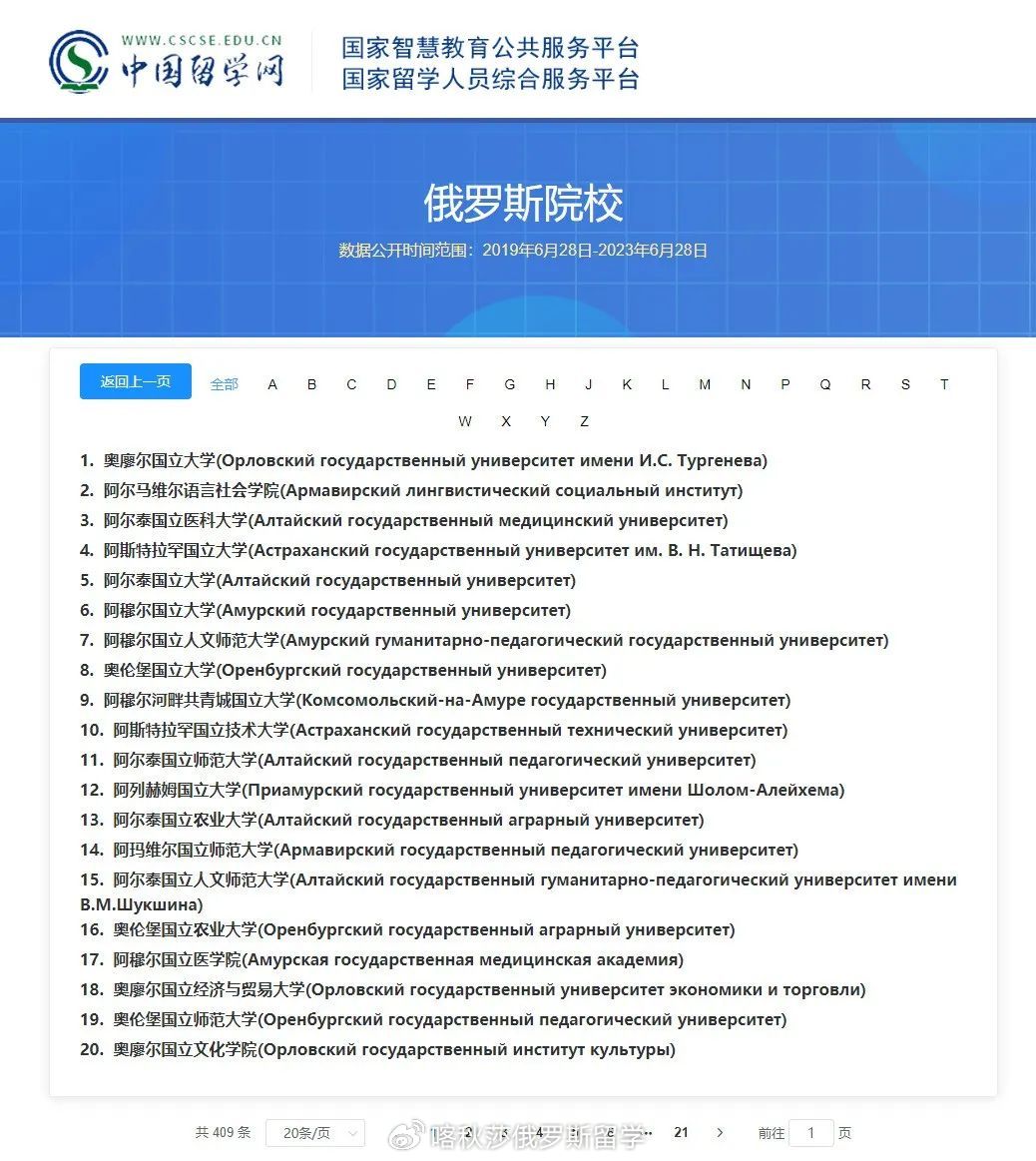 中国承认的俄罗斯大学