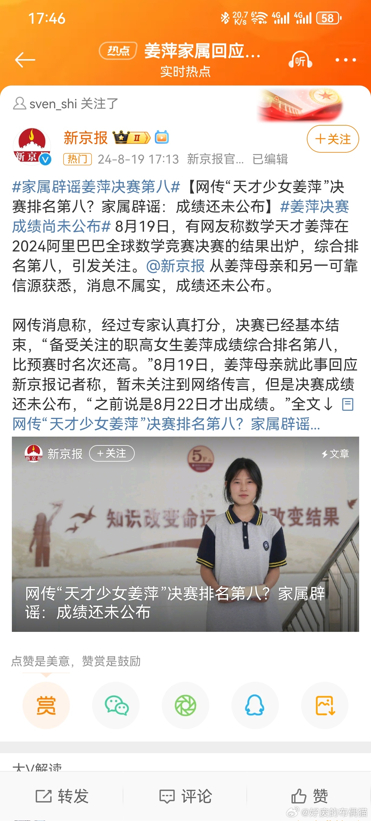 经过激烈的角逐,姜萍在决赛中勇夺佳绩,她凭借出色的表现,获得了本次比赛的优异成绩,这一成绩的取得,不仅是对她个人能力的肯定,更是对她付出的努力的最好回报。