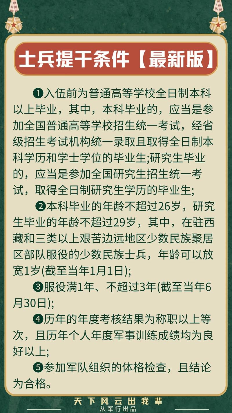随着军队现代化建设的不断推进,对士官队伍的要求也越来越高,为了选拔更多的优秀人才,军队设立了保送提干制度,这一制度旨在选拔表现突出、具有领导才能和专业技能的士官,进一步提升其职务,为军队发展注入新的活力,两个三等功士官保送提干是其中的一种重要途径。
