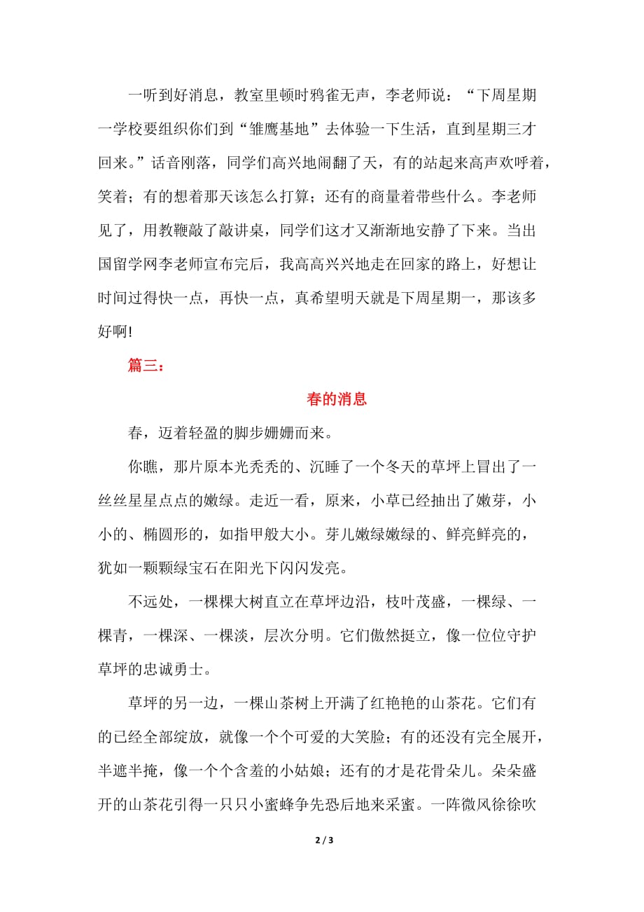 摘要:这篇初二作文是关于一则消息的报道。文章及时传达了最新发生的事件,内容涵盖了事件的基本情况、发展经过以及结果。文章语言简洁明了,结构清晰,使读者能够迅速了解消息的主要内容。作文还注重客观性和真实性,确保了信息的可靠性。