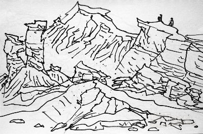 2、绘制线稿:先用简洁的线条勾勒出昆仑山的轮廓和特征。