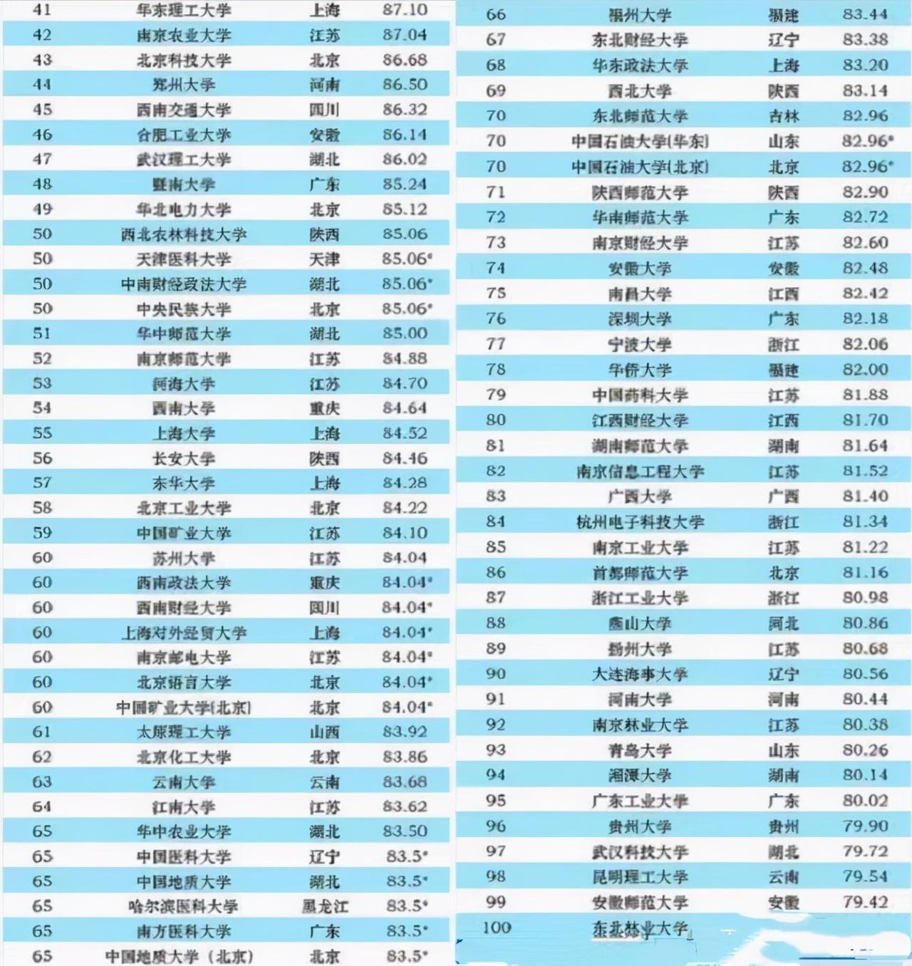 国防科技大学全国排名