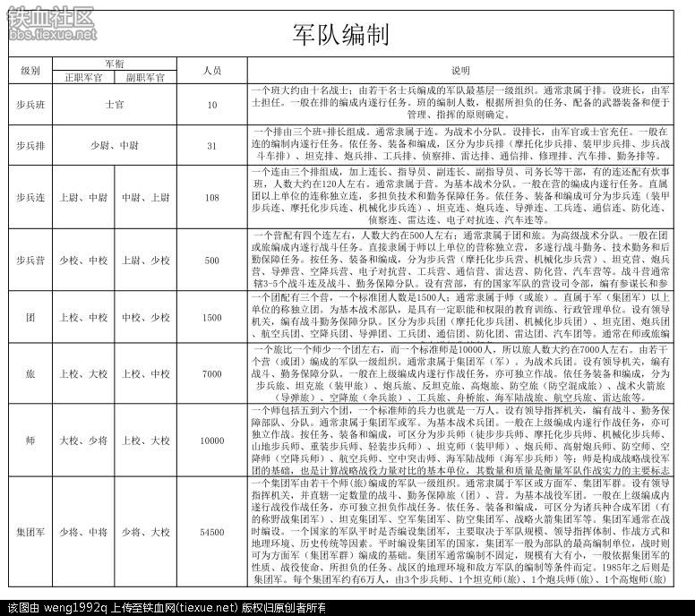 2、军兵种编制